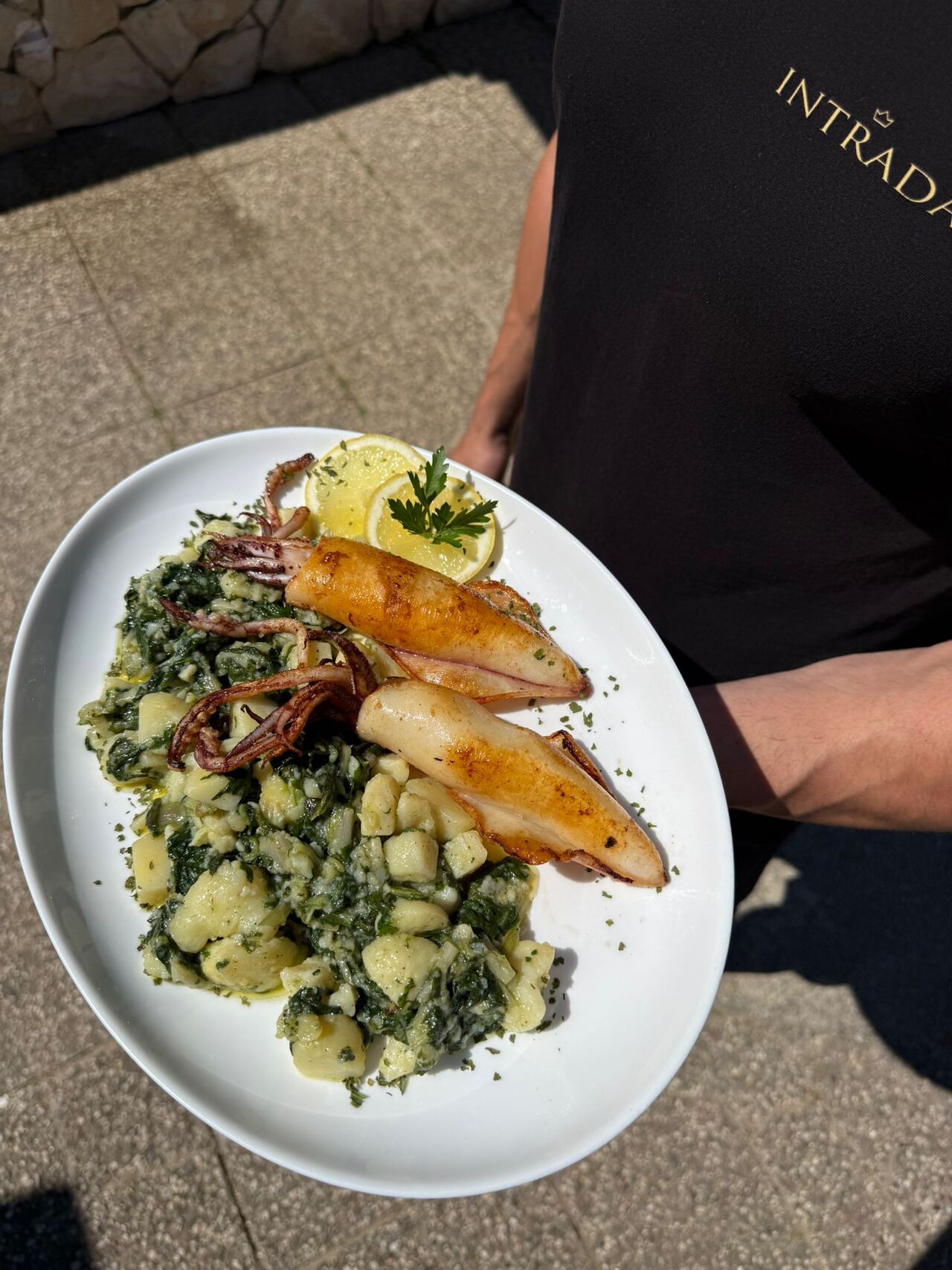 Kuhinja restorana Intrada temelji se na svježim, lokalnim namirnicama, s naglaskom na mediteransku kuhinju, pripremljenu s ljubavlju i pažnjom prema detaljima.